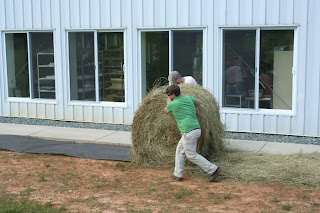 | Rolling out the hay for the Pottery Cousins |